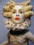 The Mantua Ladies are created in cone 10 stoneware clay called WSO by Laguna Clay. I hand build from the bottom up and let the slump and hardening of the clay dictate the form. I start with an intuitive idea and then just work with the various stages of the clay. I usually use a Chinese porcelain veneer over the stoneware when it is in the green ware stage of drying and then apply slips with stains on top of the porcelain. I then fire to bisque and then apply a clear lead crackle fire to cone 10 and sometimes use an addition layer of china paint at cone 018.